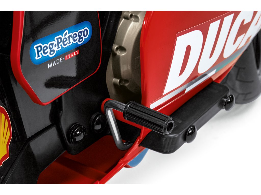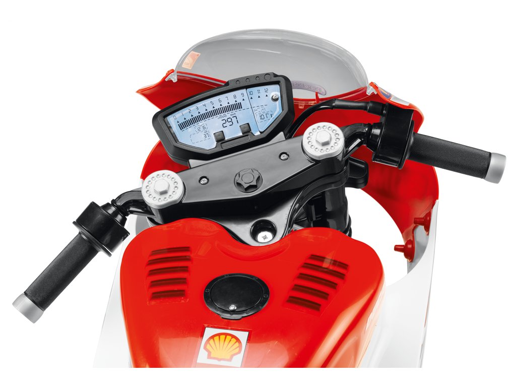 Na této elektrické motorce se bude vaše dítě cítit jako skutečný motorkář! Ovládá se pomocí ručního plynu na rukojeti a nožního pedálu pro brzdění. Dosahuje rychlosti až 7,6 km/h, proto je vhodné k motorce dokoupit ochrannou přilbu, která zajistí maximální bezpečnost malého závodníka. Pro dokonalý zážitek z jízdy je tato elektrická motorka vybavena také zvukovými efekty motoru a klaksonem. Motorka je poháněna dvěma elektrickými motory a nabízí možnost nastavení dvou rychlostních stupňů. K motorce lze připojit pomocná kolečka, takže se nemusí bát ani méně odvážní jezdci.
