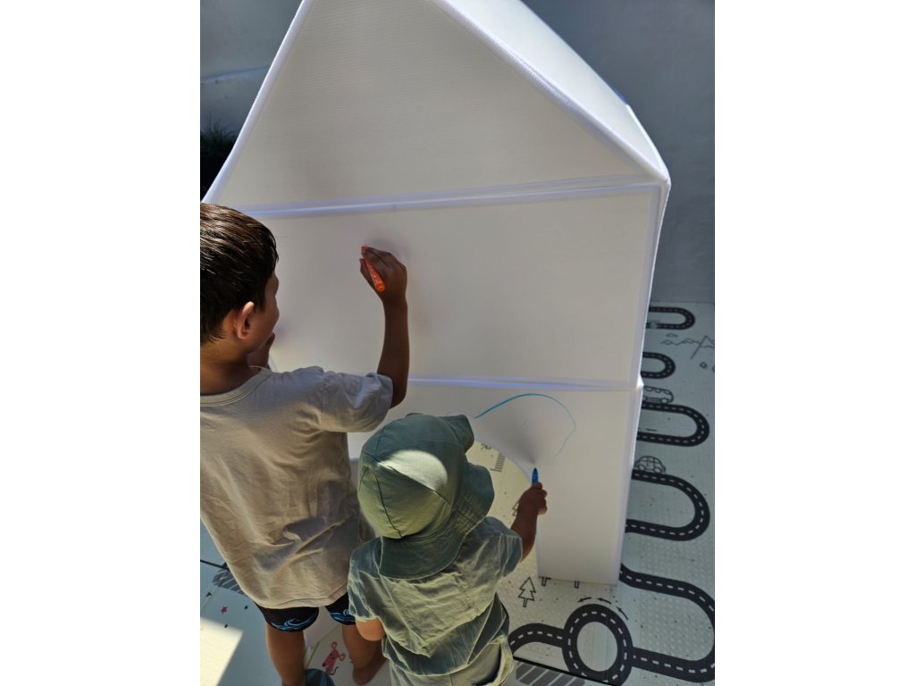 A jakmile je domeček postaven, začíná ta pravá zábava! Děti jej mohou libovolně malovat, zdobit nálepkami a přetvářet tak, jak se jim líbí. Podporují tak nejen svou představivost, ale i jemnou motoriku. Společná tvorba s kamarády navíc rozvíjí jejich sociální dovednosti.