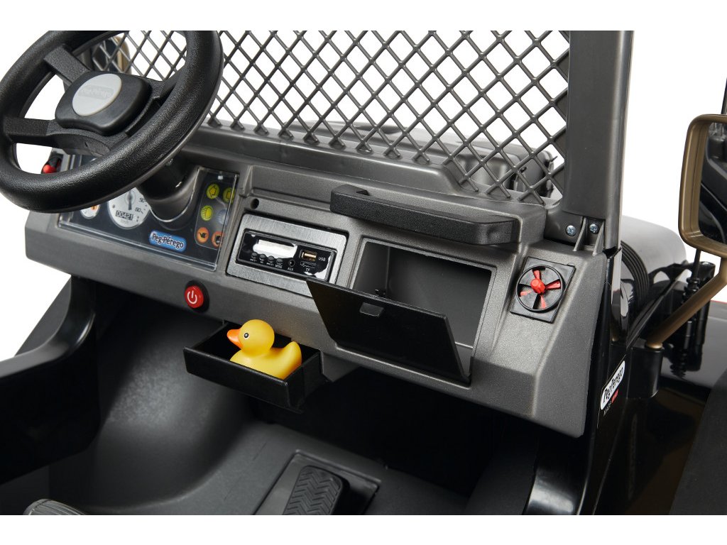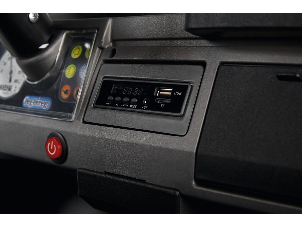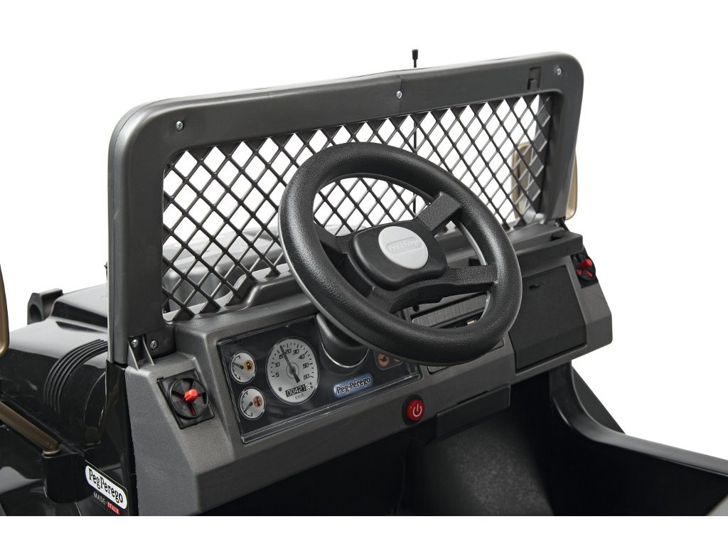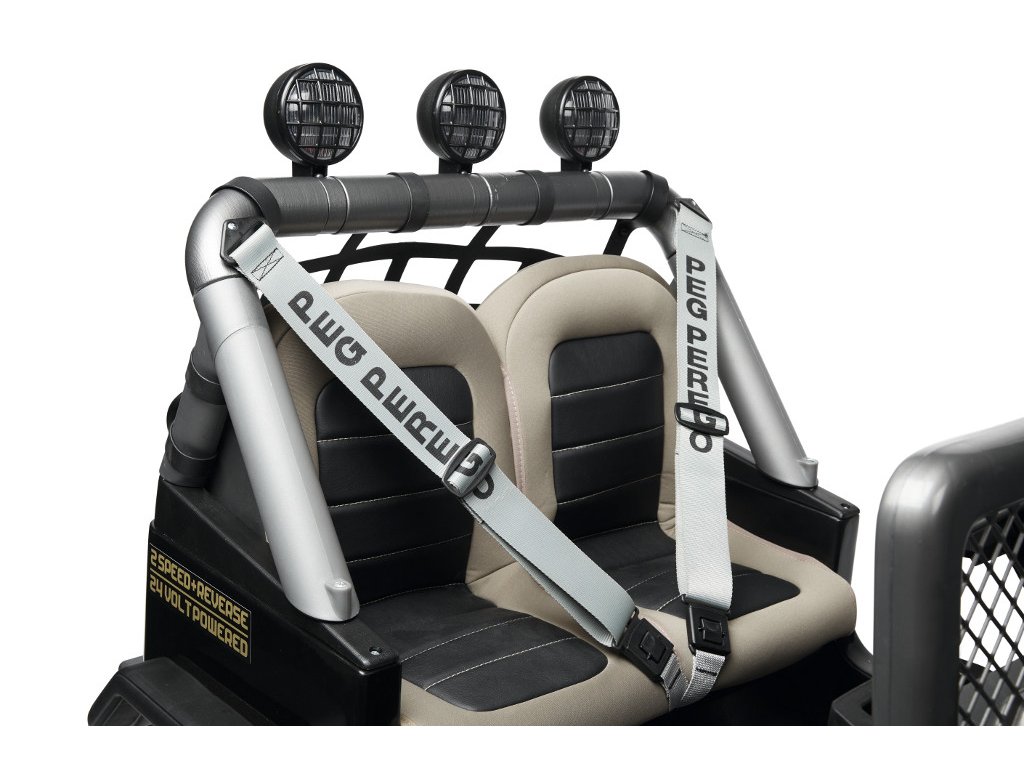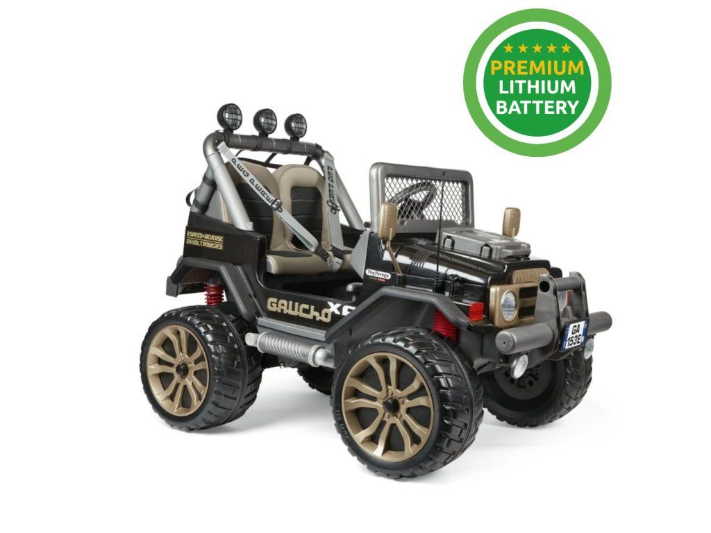 Dětské elektrické autíčko Gaucho XP od výrobce Peg Perego je dětský džíp se dvěma nastavitelnými sedadly, takže si vaše dítě může na dobrodružnou cestu vzít i svého kamaráda. Během jízdy na čtyřech plastových kolech, která jsou připravena i na terénní štěrkové podmínky, si děti mohou pustit hudbu ze zabudovaného FM rádia s MP3 vstupem a užít si dokonalou jízdu rychlostí až 8 km/h! Toto dětské elektrické autíčko se ovládá pomocí jednoho pedálu – plynu i brzdy zároveň. Jeden ze dvou rychlostních stupňů nebo zpátečka se nastavují.
