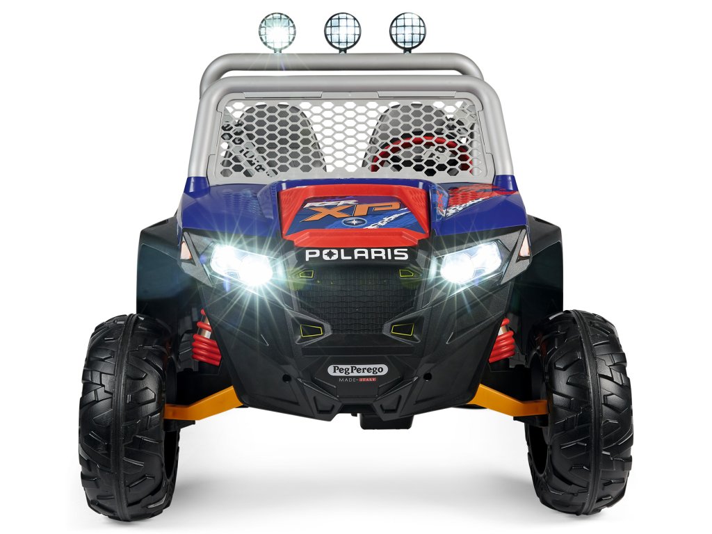 Polaris RZR 900 XP od výrobce Peg Perego svým designem připomíná parádní terénní džíp, proto okamžitě zaujme vaše děti a jízda na něm bude pro ně opravdovým zážitkem! Dvě nastavitelná sedadla poskytují pohodlnou jízdu pro 2 děti a velká výkonná kola se postarají o komfort i na nerovných a hrbolatých površích, jako je štěrk či tráva. Ovládá se pomocí nožního pedálu – jeho stlačením se vozidlo pohybuje vpřed maximální rychlostí 10 km/h a uvolněním pedálu zabrzdí. Pomocí řadicí páky lze přepínat 2 rychlostní stupně a také zpátečku. Malé řidiče jistě potěší volant s klaksonem a vás zase bezpečnostní pásy, které zajistí jejich ochranu. Tak nasadit, připoutat se a vyrazit na jízdu!